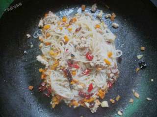 用筷子翻拌,倒一点老抽调色,慢慢炒一会后加少许盐、鸡粉调味。