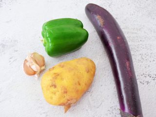 洗净滚刀切块,洗净去籽切成小块,去皮滚刀切块,蒜切末