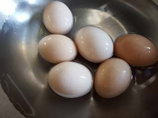 1.取出六颗鸡蛋放入清水中浸泡,洗净备用。