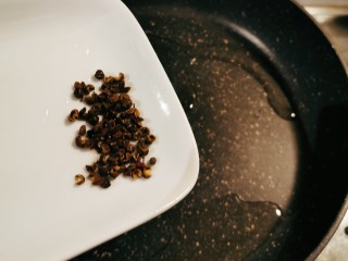 起油锅 放入一汤匙花椒 加热