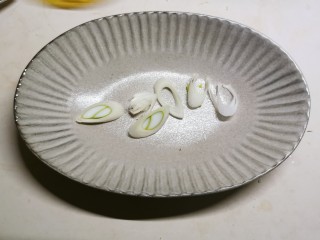 取出鱼盘 放入葱片