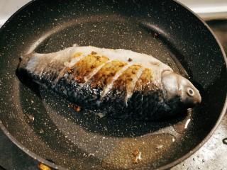放入鲫鱼 煎制