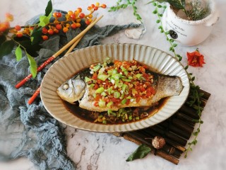 家里有两条鲫鱼 一条煮汤 一条剁椒蒸鲫鱼 好美味的晚餐