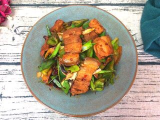 下蒜苗翻炒片刻,出锅