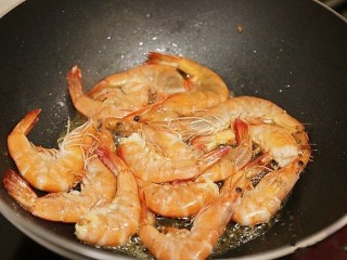 锅中倒入少许油,油热后,将虾头放入锅中煸炒出虾油,然后把虾头取出扔掉锅中留下虾油。