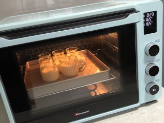 送入预热好的烤箱、下层、165度、30-35分钟,直到布丁液完全凝固