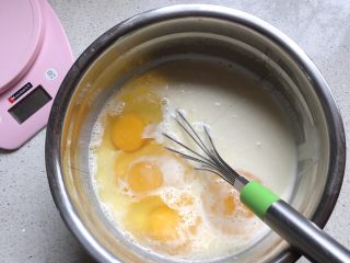 加入,用手动搅拌器搅拌均匀。