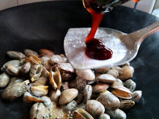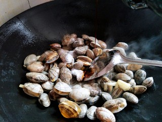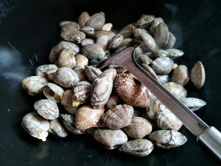 抄到花甲都开口了,然后撒点葱段炒一下就搞定了!
