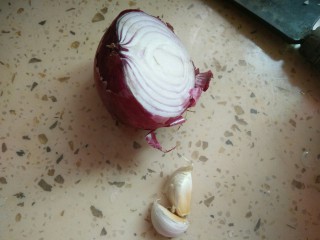锅中放油,把洋葱和蒜粒倒进去翻炒