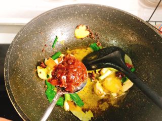 放入盐、、、、、味极鲜、干辣椒(喜欢吃辣多放些辣椒)翻炒均匀