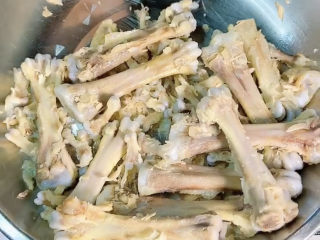 松松鸡爪筋骨,沿着鸡骨头先取出大骨头