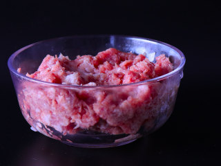 猪肉剁成末。猪肉选用三分肥七分瘦的前腿肉,这样的肉口感会更好。