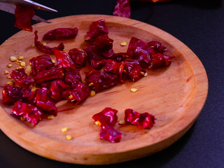 放入干辣椒段翻炒两下。