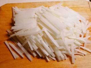 萝卜去皮切丝。
