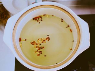 锅里填上适量的水, 放入(新鲜橘子皮也可以)和, 在倒入一点。 放这些能够很好的去掉肉的不好气味~