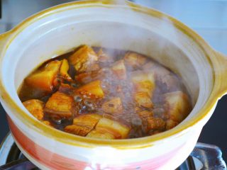 这是炖了半个小时的状态。 用筷子翻一下,继续炖到酥软。 建议炖到一小时以上~ 最后有汤,中火在收一下即可。