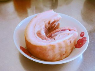 .然后切成麻将大小的块。 可能还有人问:为什么不先切好在过水? 我觉得先切好的在过水,肉皮受热回缩,肉不见方,影响美观!