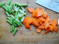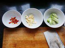 葱洗净,斜着切成小段;蒜去皮,切片;小红尖椒切小段;马铃薯淀粉加入50mL水搅拌均匀