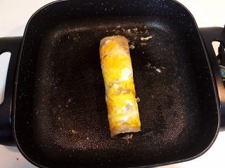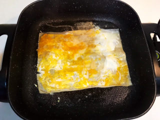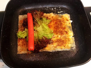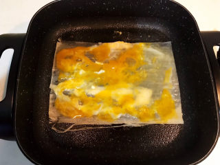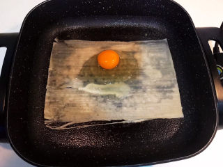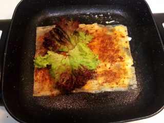 炒锅刷一层大豆色拉油,加入一片冷面,在冷面四周撒一点冷水,免得冷面四边打卷,小火煎制