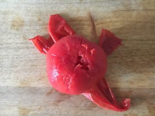 用开水焯烫一下,撕去皮。
