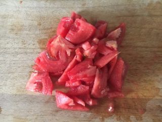 将番茄切成块备用。