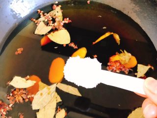 锅里倒入1盆水,放入以上香料。