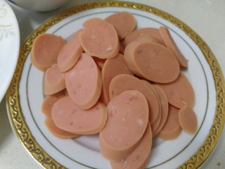 放入香肠,文火把香肠煎一下。