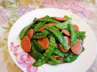 放入荷兰豆,文火炒匀。