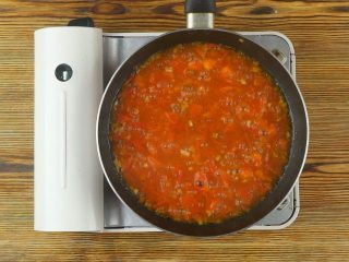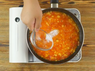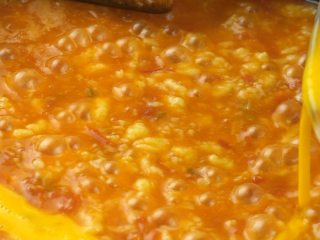 炒锅倒油烧热,放入葱花、蒜末爆香,再放入西红柿丁炒至软烂,而后倒入适量热水煮沸