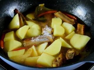 加开水淹没排骨,小火炖40分钟后加入土豆。