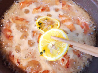 再加入两片柠檬片,中火慢炖。