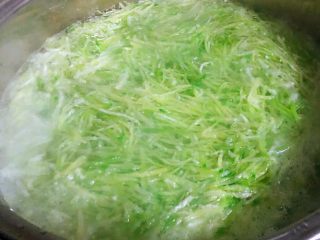 锅中烧开水将萝卜丝焯水去除辣味后立即放入冷水中过凉