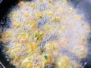 锅中倒入适量油加热油温至八成热成热放入萝卜丝丸炸起来