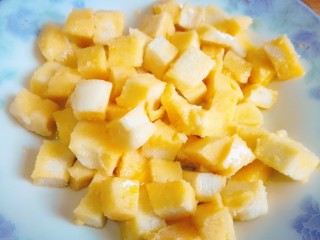 让馒头丁均匀裹上蛋液
