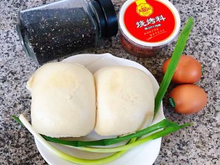 准备原材料、、香葱、和烧烤料备用