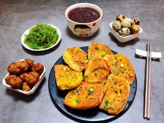 两面都煎至金黄色我喜欢吃脆一点的就多煎了一会再撒上葱花和黑芝麻即可出锅享用