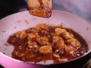 锅烧热,倒入适量的植物油,油热后将大蒜下锅炒香,倒入一大勺的耗油,两大勺的生抽、虾仁一同下锅翻炒,炒香即可出锅。