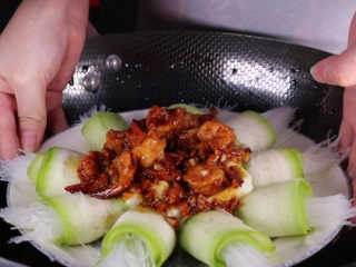 这样一道清甜爽口,好吃又快手的下饭菜菜虾仁蒜蓉蒸丝瓜就做好啦,夏天吃最合适不过了呢。