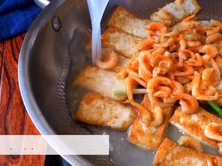某日的午后 坐在电脑旁 慵懒随意乱翻着网页 无意中发现了这道有故事的美食 于是带着好奇心尝试着做了 干虾米和酒酿汁经过火候的慢焖 鲜香味全部溶入豆腐中 去除了豆腐的豆腥味 猪油的煎制使这道菜更加的鲜香可口 非常不错的一道美食 来 让我们一起做起来吧