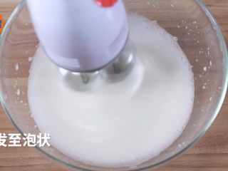 三、蛋糕(250大卡) 1.蛋清15克,细砂糖35克分三次倒入,打发至泡状。