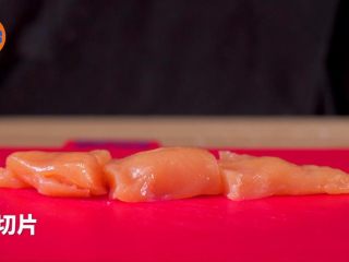 四、香煎鸡胸肉(250大卡) 1.肉切片。
