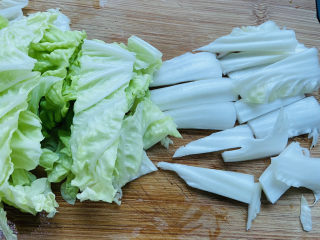 洗净沥干水分,白菜帮和白菜叶分开切