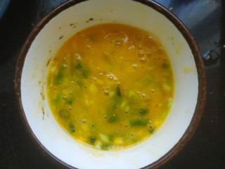小碗中打入两调匀,加入葱花姜末