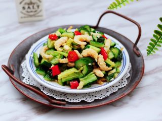把搅拌均匀的海米拌黄瓜,盛入盘中即可。