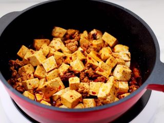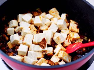 翻炒均匀后,加入少许清水煮沸,炖煮至汤汁粘稠时。