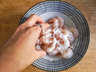 将鲜虾去壳剥出虾仁,并开背去虾线后洗净。