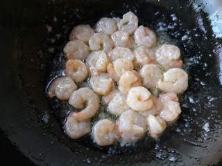 热锅倒入油,烧至5成热时下入腌好的虾仁。