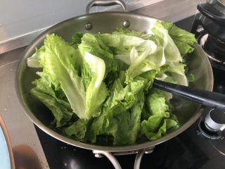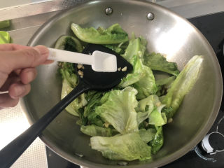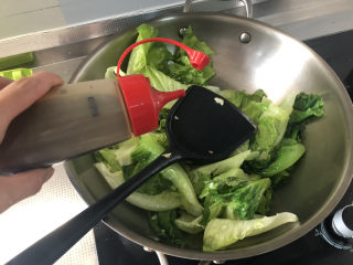 调味:加入一汤匙,注意:千万不要等到生菜叶完全炒软塌了再调味,那样生菜就不脆了