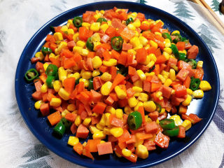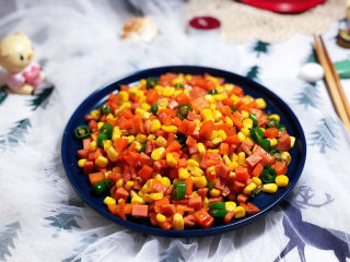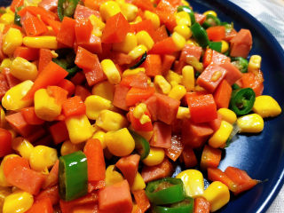 这道小炒,做法简单快捷,胡萝卜爽脆,玉米清甜,搭配火腿肠线椒,营养更均衡,喜欢的小伙伴们快来试试吧