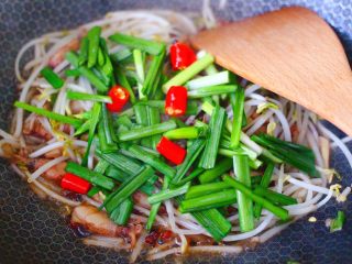 加入浸泡后洗净的海兔,大火继续翻炒至所有食材均匀混合。